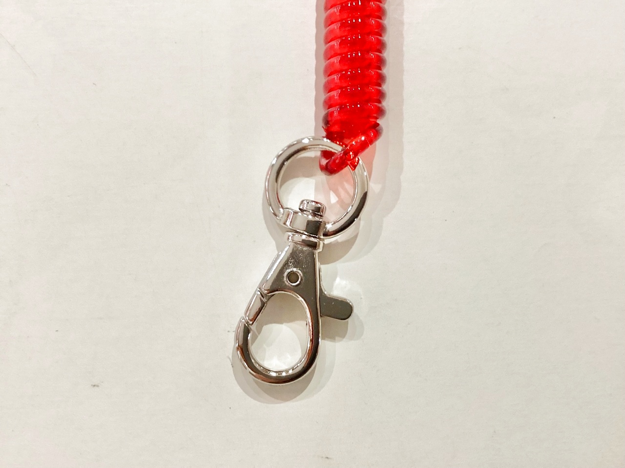 コイルの形のキーチェーン。コイルが伸び縮みするのでパスケースなどを付けて出し入れが簡単になったり、落下防止になったりと便利なアイテムです。カラーは、右から、A(ブルー・クリア・レッド)、B(オレンジ・ピンク・パープル)、C(グリーン・ライトブルー・ブルー)です。